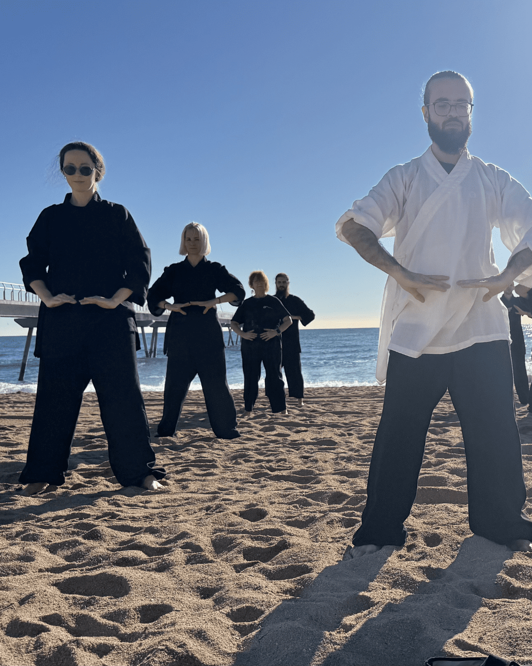 La pràctica es desenvolupa amb una orientació energitzant i conscient, aprofitant la força revitalitzadora del mar i l’amplitud de l’espai obert. L’aire, la llum i el so de les onades afavoreixen una relaxació més orgànica i una presència més clara. Practicar a la natura ens convida a retornar a l’essencial, a simplificar i a escoltar amb més sensibilitat.