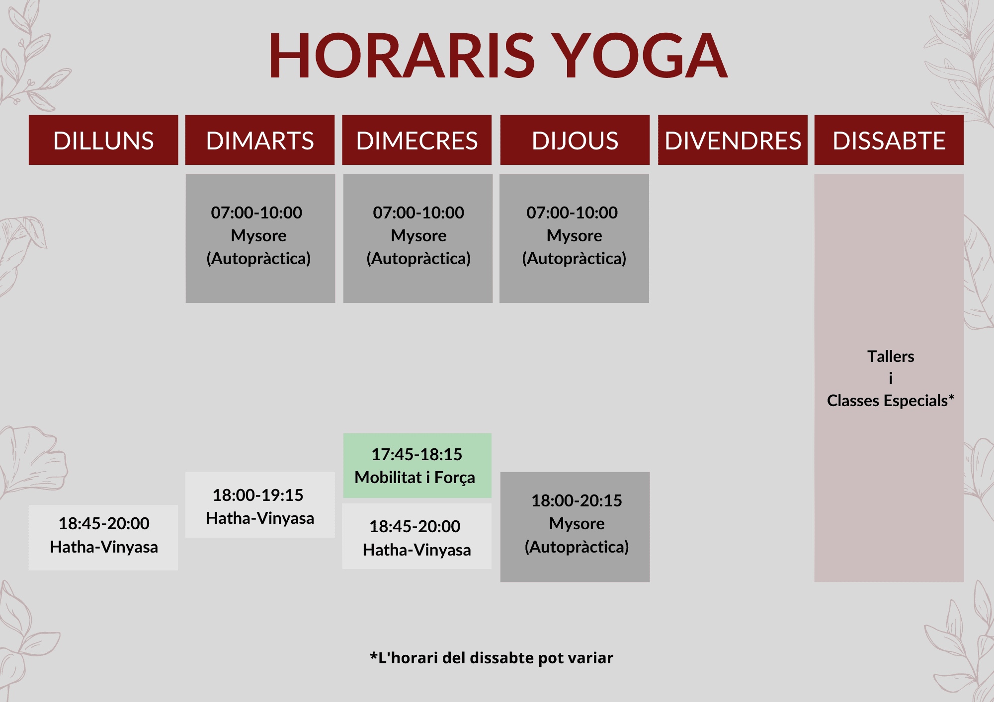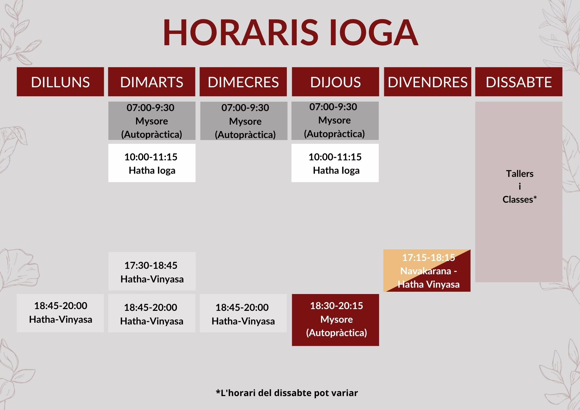 A través de les postures (ásanas), la respiració conscient (pranayama) i l’atenció plena, el yoga ens ajuda a reconnectar amb nosaltres mateixos, alliberar tensions i viure amb més consciència.